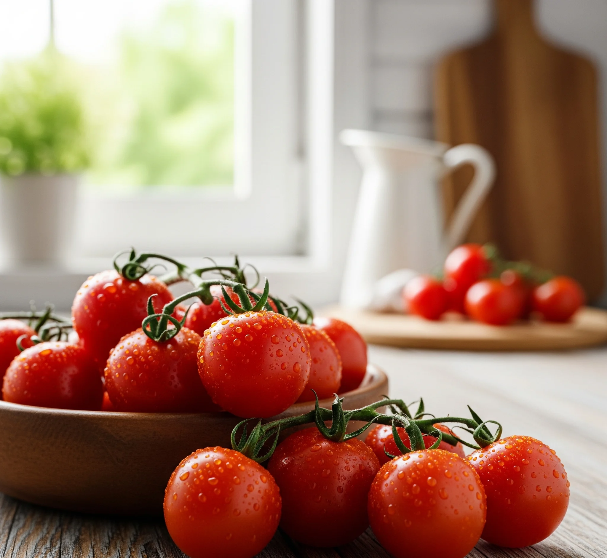 Health Benefits: Red Cherry Tomatoes are a powerhouse of nutrition, packed with Vitamin C, Vitamin A, and antioxidants. They are a low-calorie food that supports healthy skin and a strong immune system.